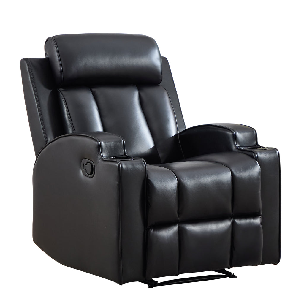Bonzy Home Heated Manual Massage Recliner with Cup Holder Padded PU Leather Recliner, Home Theater Seating,Black