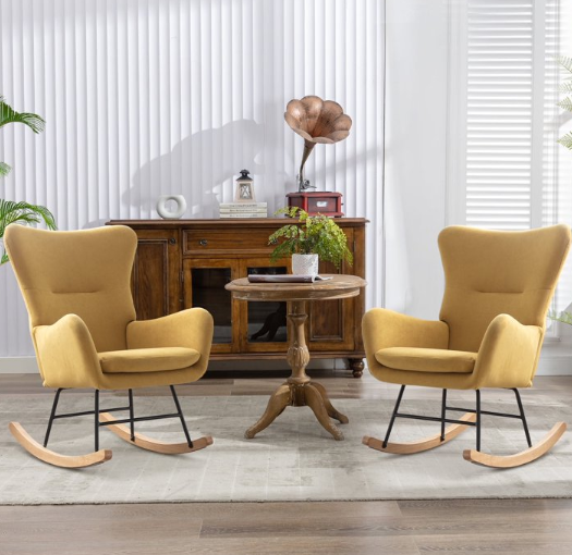 Bonzy Home Nursery Rocking Chair, Accent Rocker Glider Side Chair with High Backrest for Nursery Living Room Bedroom Office,Yellow(set of two)